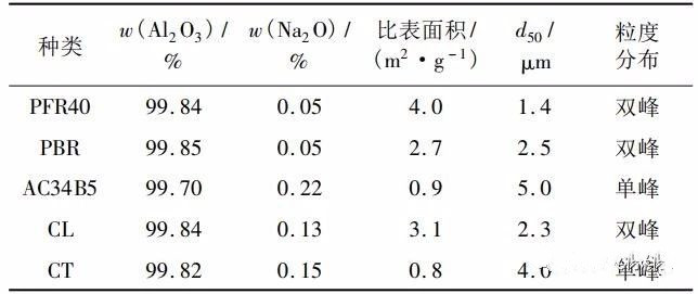 ▲表1 不同种类氧化铝微粉的理化性能